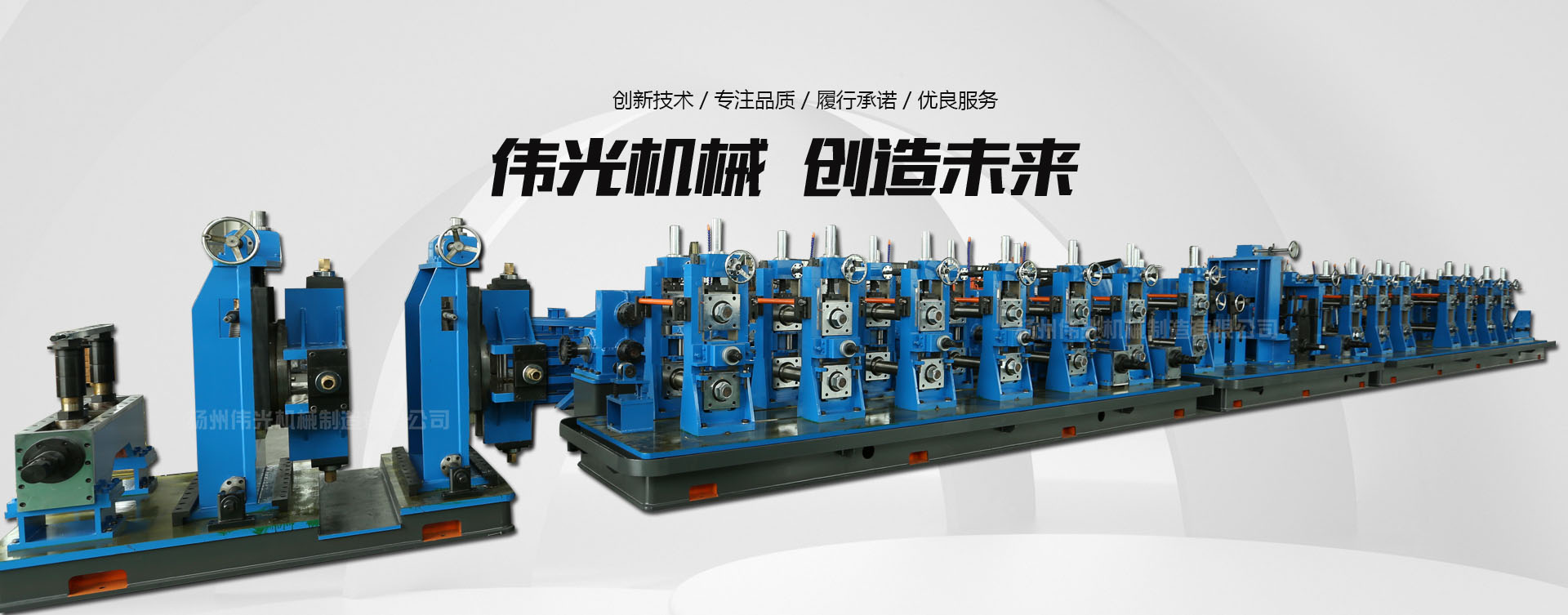 本公司博采眾家之長,專業(yè)制造Φ16-Φ377焊管設(shè)備,分別有WG16型、WG25型、WG32型、WG50型、WG76型、WG114、WG127,WG165,WG195,WG219,WG273,WG377 型等精密焊管設(shè)備及氬弧焊不銹鋼、冷彎型鋼、冷軋帶鋼等設(shè)備和近年來研制開發(fā)的制冷管系列設(shè)備均得到國內(nèi)外廠商的一致好評(píng)。